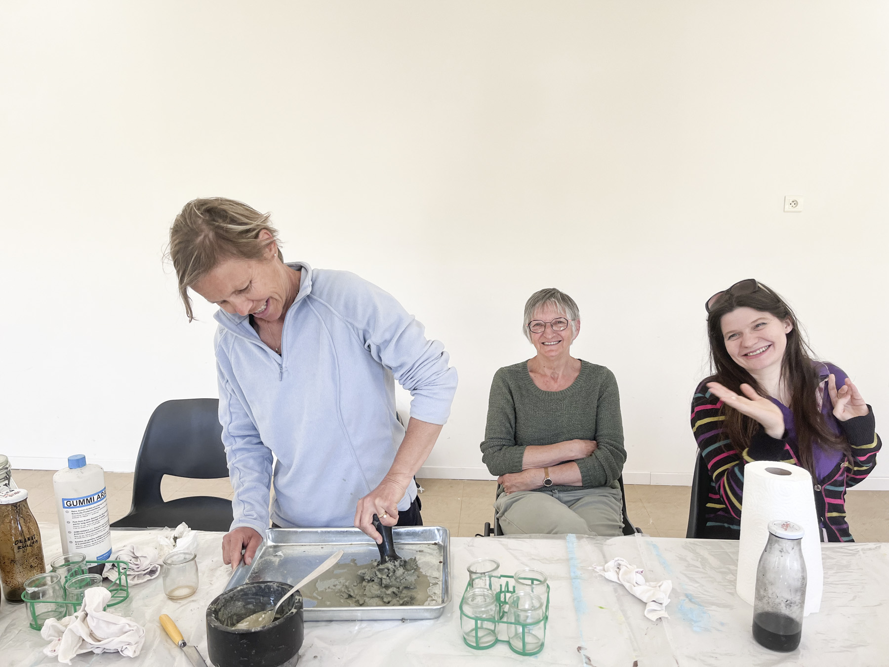A partir de moules de 3 tailles différentes, les participant.es fabriquent leur propre proposition avec pour seul consigne de cacher dans l'assiette sur laquelle repose leur suc une représentation d'une odeur qui leur semble représenter le pays du Puy en Velay.