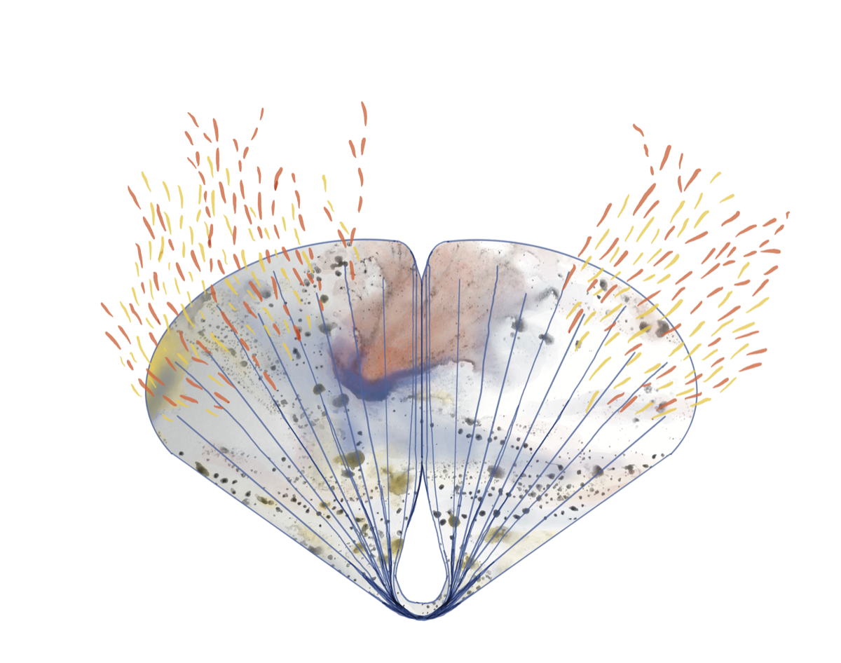 Nous avons abordé les odeurs dans deux ateliers de pratiques plastiques amateurs. Avec le groupe de Marie Lac, nous avons travaillé sur des cloches à sentir : "les sucs". Les élèves du cours de Sébastien Alibert aux Ateliers des Arts ainsi que les bénévoles de Dismoi où tu vis ont expérimenté la fabrication d'encres végétales et minérales dans le but de produire des éventails odorants où "éventaires".